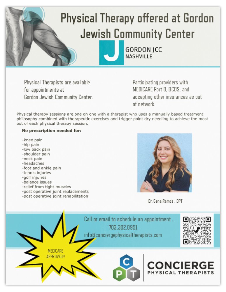 Concierge Physical Therapists is in-network with BCBS TN and Medicare Part B and offers a J Preferred Members private-pay rate.