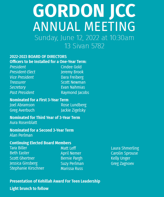 Join us for the Gordon JCC's 119th Annual Meeting!