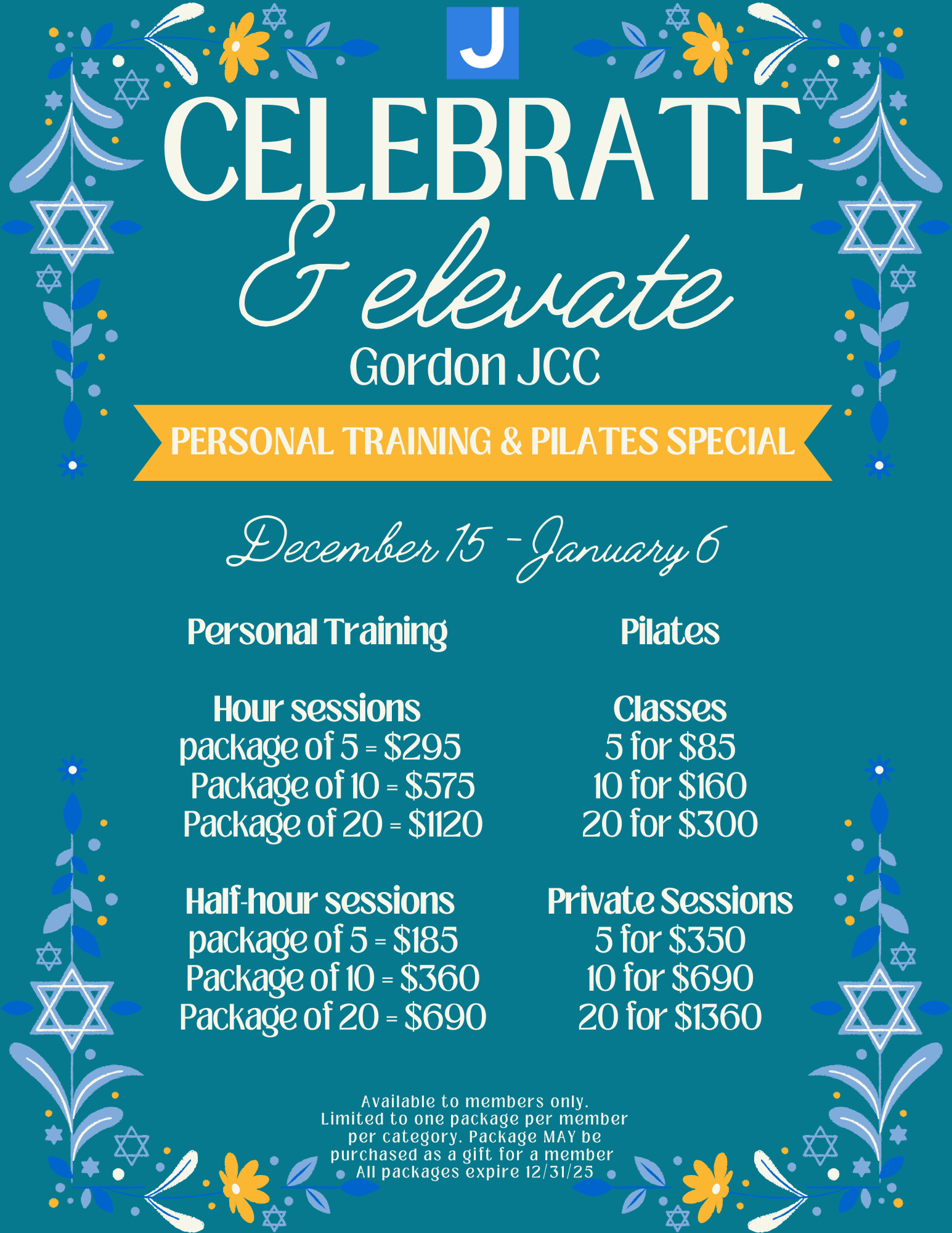 It’s the perfect time of the year for our members to check out all of our exclusive fitness programs. Our Winter Sale runs December 15-January 6, available for members only, and limited to one package per person, per category!